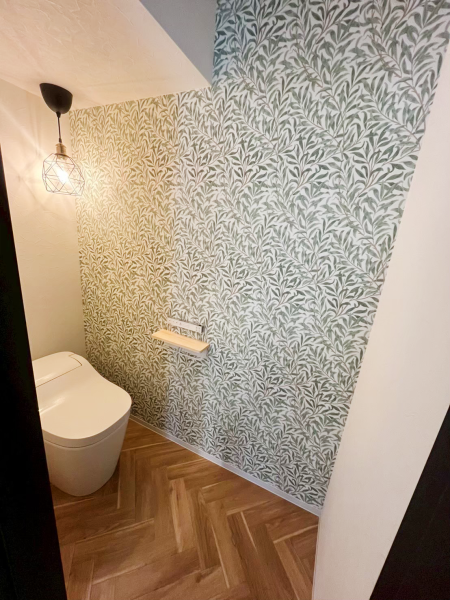 モリスの壁紙が素敵なトイレ。